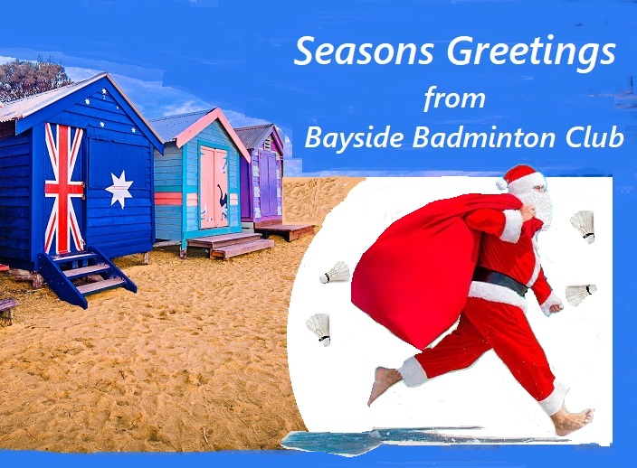 Bayside Badminton Club Year End Festive Celebration. Tuesday 9 December 2025 at 7.30 pm. All members, family and friends of BBC; all ages welcome. Singing, Soft drink, Subway, Sushi and Pitzza to share. Shuttle time for kids and grand parents on back courts.